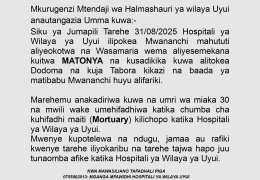 TAARIFA KWA UMMA: UWEPO WA MWILI USIO NA NDUGU